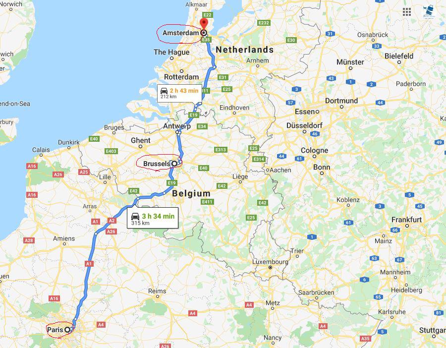 - ترانسفر زمینی بین 3 شهر پاریس، بروکسل، آمستردام