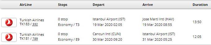 - پرواز ترکیش در مسیر استانبول- هاوانا / کانکون- استانبول