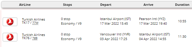 - پرواز ترکیش در مسیر استانبول- تورنتو / ونکوور- استانبول