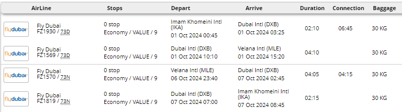 - پرواز فلای دبی(تهران- دبی-ماله* و بالعکس)