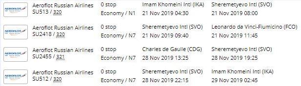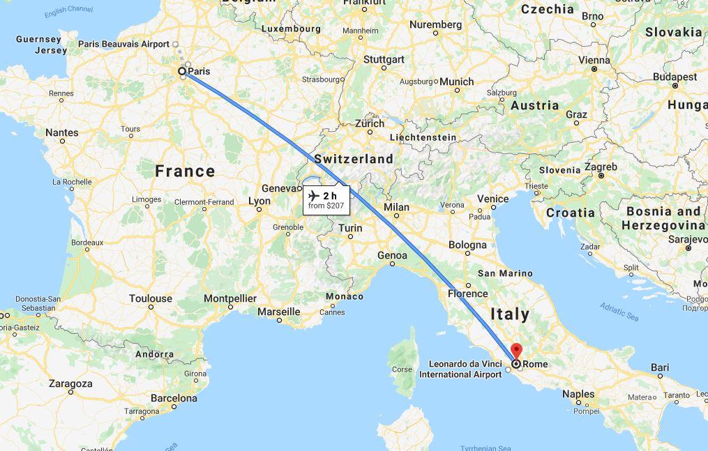- پرواز ترکیش یا سایر پروازها با یک توقف (رفت: تهران-رم / برگشت: پاریس-تهران)